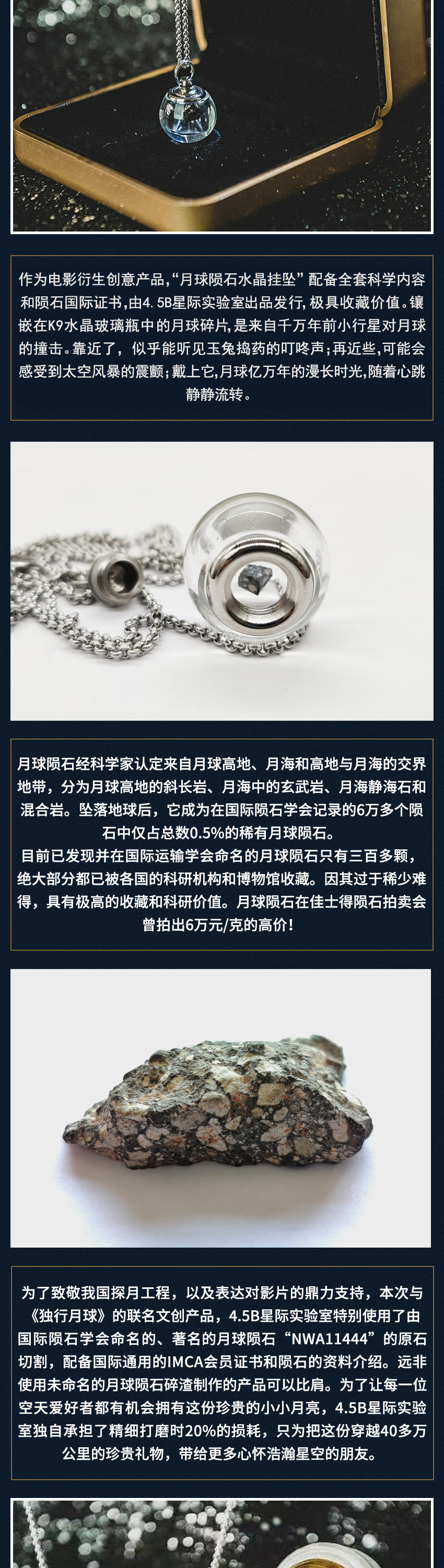 首页  >  【来自月球的珍贵礼物】独行月球联名 &4.5B星际实验室联名 月球陨石水晶挂坠 开心麻花电影周边情侣吊坠项链创意礼物 带国际陨石收藏家协会会员证书防伪贴 具有收藏价值