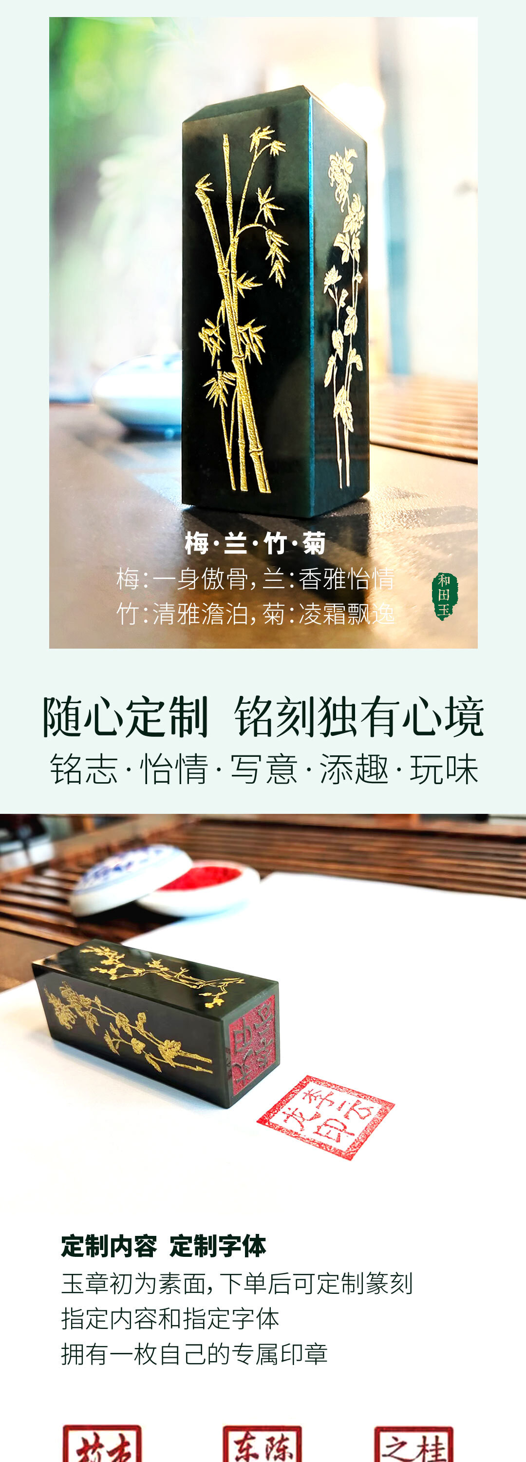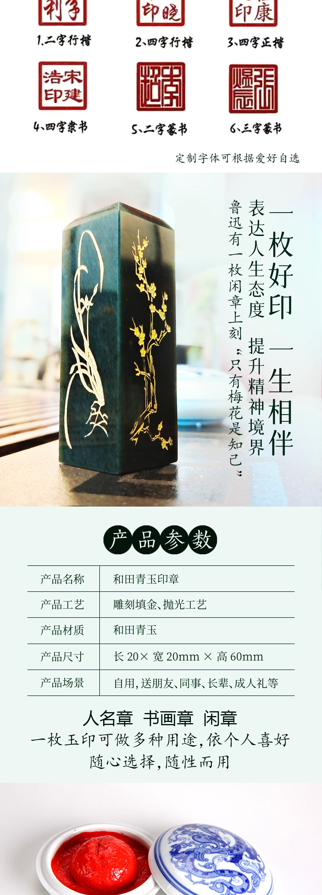 关于定制:和田玉章私人定制可根据选择的字数、字体留言备注内容,无需备注任选规格和任意留言信息即可;