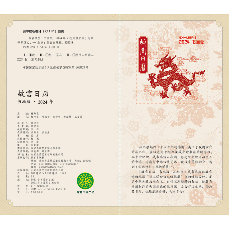首页  >  【新书】故宫日历 书画版 2024年 附火云龙纹徽章、龙纹藏书票