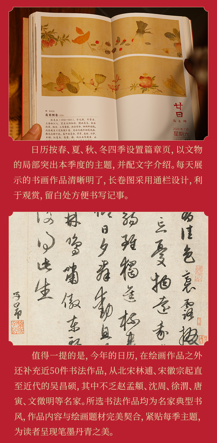 【新书】故宫日历 书画版 2024年 附火云龙纹徽章、龙纹藏书票