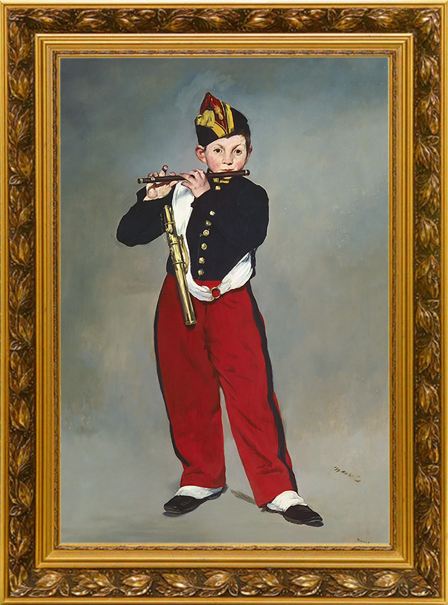 《吹笛少年》是马奈非常重要的代表作品,描绘的是近卫军乐队里的一位少年吹笛手的肖像。