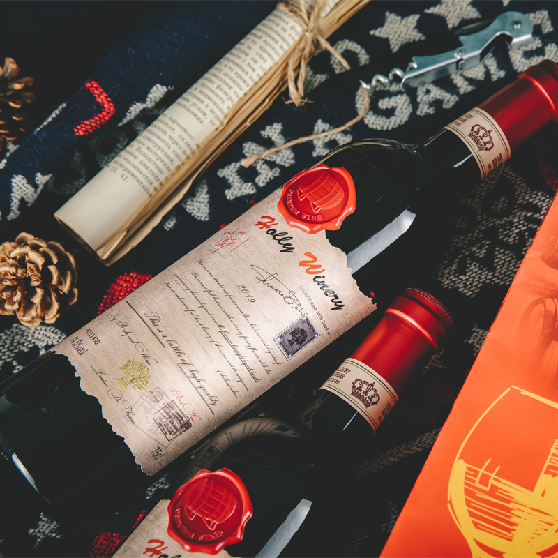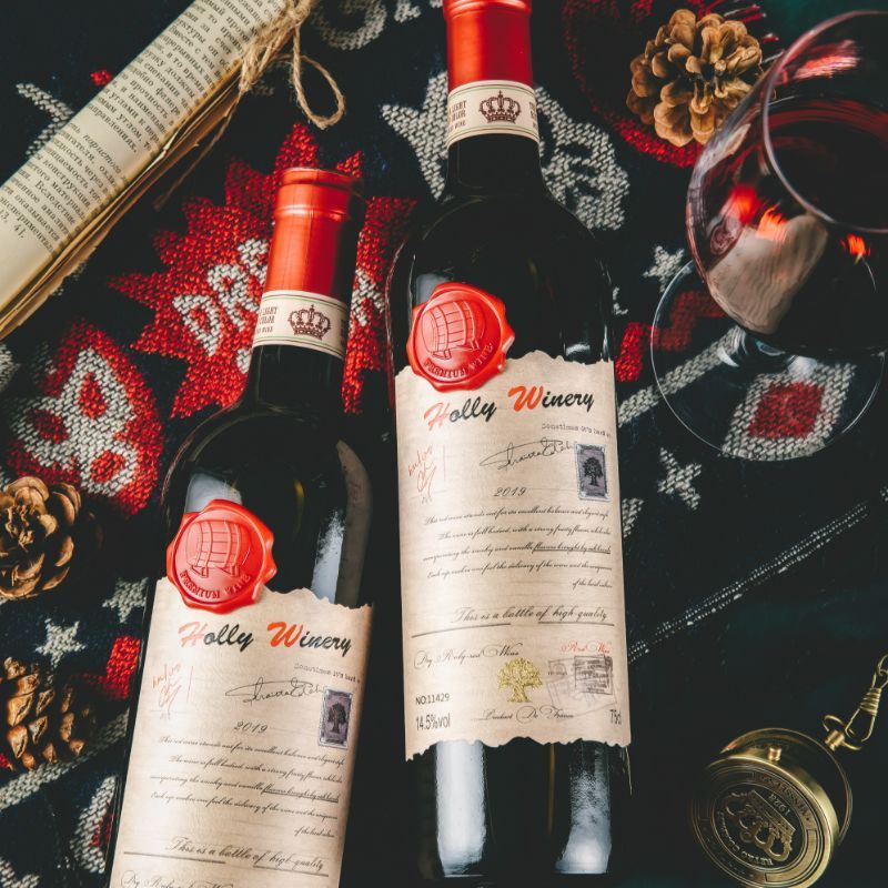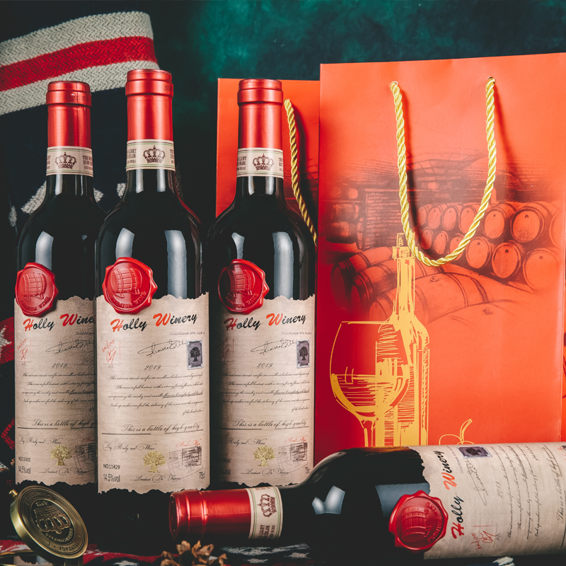 疯抢中!!【法国进口】霍利酒庄黄金古树邮票干红葡萄酒 750ml*4瓶礼袋装+海马刀