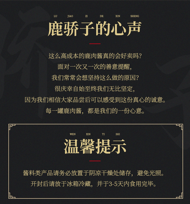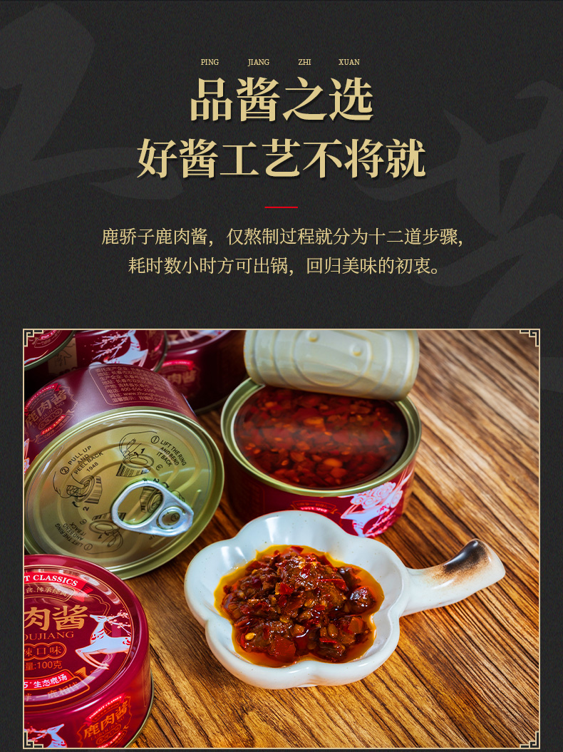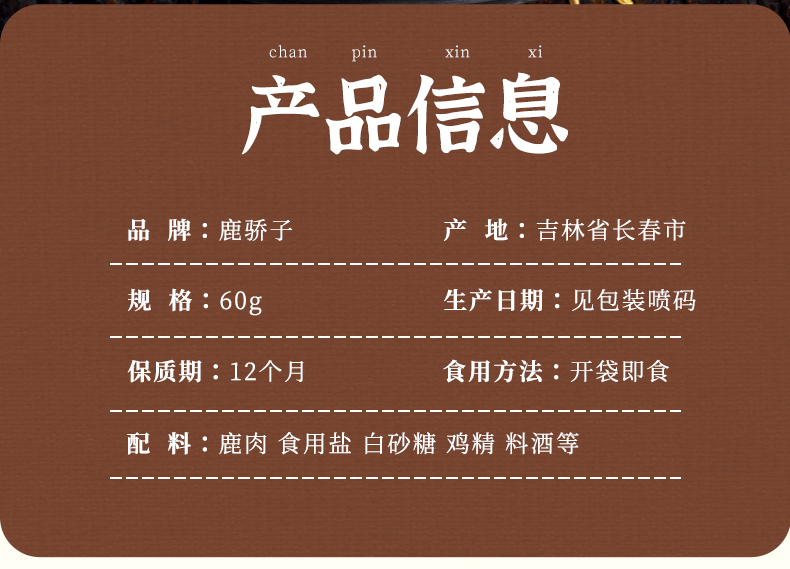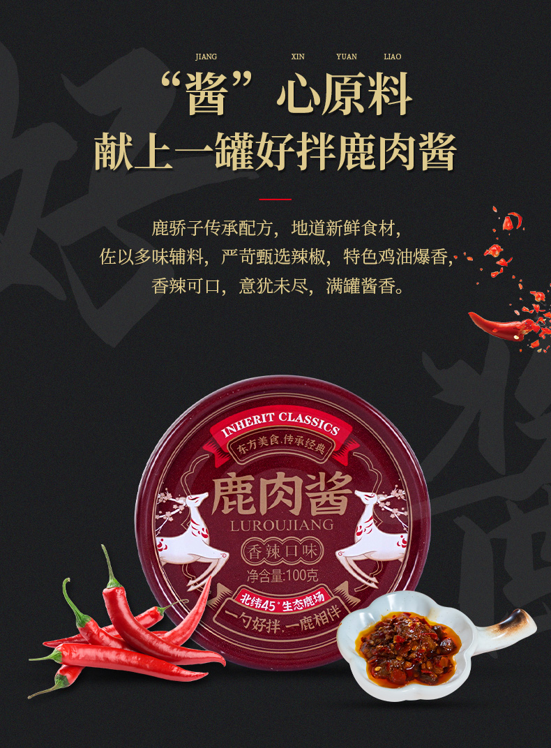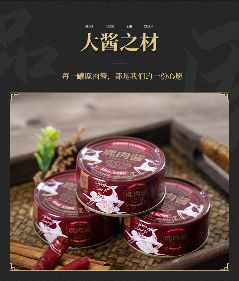 首页  >  【来自“中国梅花鹿之乡”】鹿骄子·鹿肉干&鹿肉酱 来自北纬45°东北生态鹿场 鹿肉干60g/袋 鹿肉酱100g/罐