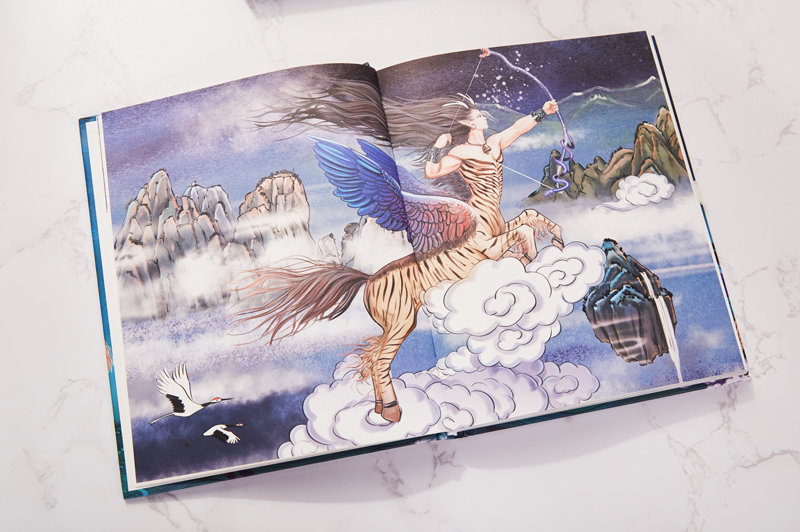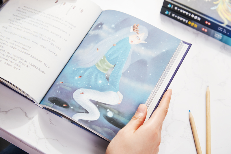 每一册书,皆是硬装封面,非常有质感。以蓝色为主色调,象征着遨游知识的海洋,加以天神、神兽的绘制,神秘梦幻。