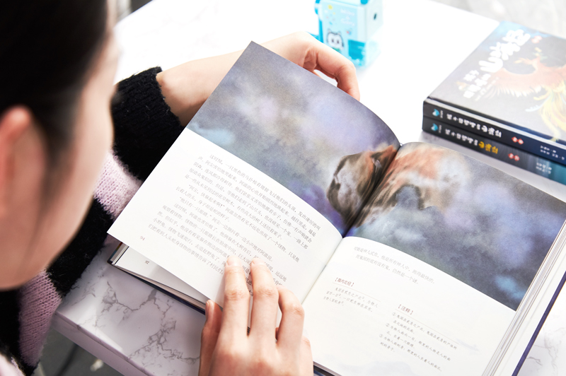 此外,扫描书本背面的二维码,国家一级播音员就会为孩子朗读书里的故事,让他们能边干别的事便听,时时享受《山海经》带来的奇幻。