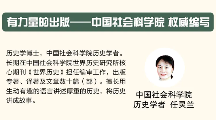书的作者——中国社会科学院历史学者任灵兰,是历史学博士,精通中外历史,擅长用风趣语言,结合孩子生活经验,将厚重历史讲成他们爱读、爱看的故事。