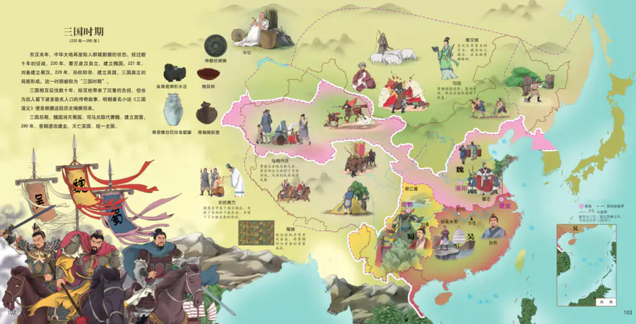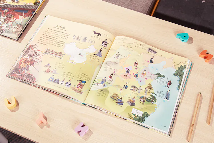 就像眼前这套《地图上的全景中国史》,相比容易消磨孩子耐心的枯燥文字读物,它简直跟打一场游戏般精彩有趣。
