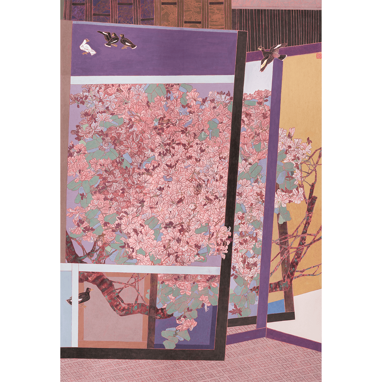 深圳画院画家罗兰创作的《紫荆迎春来》是2021年创作的一件工笔作品。