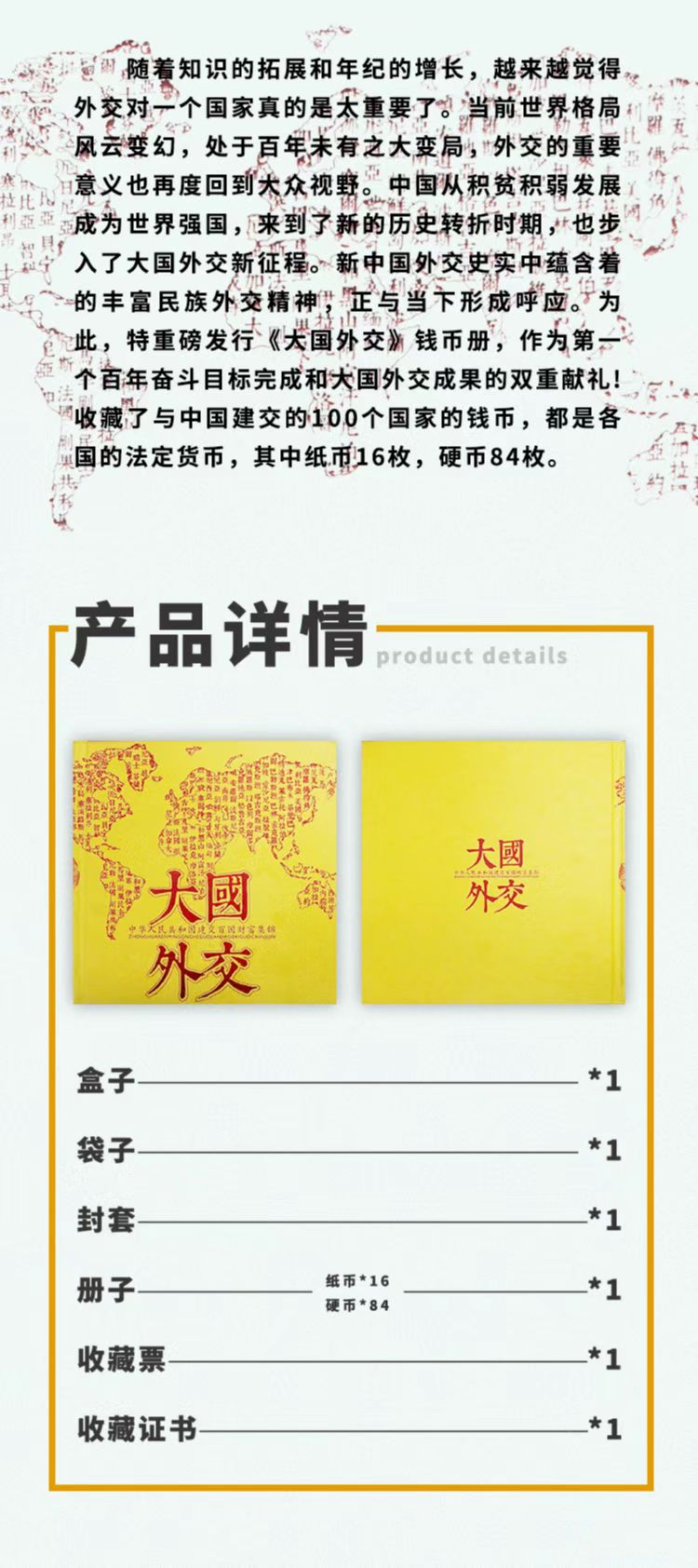 【100枚钱币 收藏佳品】《大国外交》钱币册 收集覆盖广 意义非凡